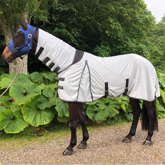 Täcket är ett effektivt insekttäcke med fast hals med nylonfoder för att undvika slitage på manen och fast magplatta med bra justeringsmöjligheter i gjordarna.
