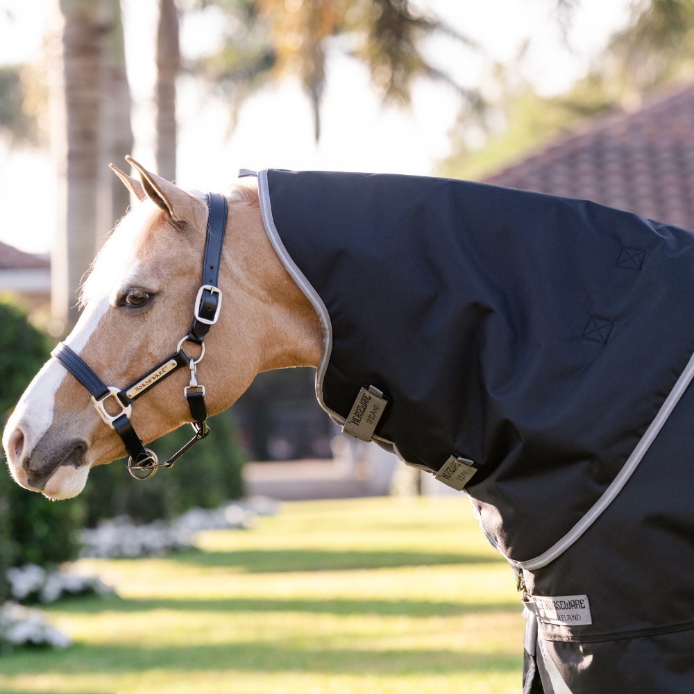 Hästtäcken är tillverkat i stark 1200D polyester, som ger hög slitstyrka, samtidigt som det är vattentätt och andas. Den lätta 50g-fyllningen säkerställer behaglig värme utan att överhetta.