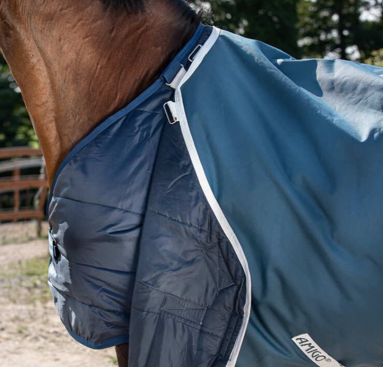 Innovation för en grönare framtid. AmEco är tillverkat av återvunna plastflaskor, 218 plastflaskor återvinns för att skapa 1 hästtäcken. 1200D rPET polyester yttre, som är hållbart, vattentätt och andningsbart. Miljövänligt fyllning för överlägsen andningsförmåga, som ser till att din häst känner sig bekväm. Hållbart glansförbättrande rPET-foder som förhindrar nötning och främjar en slät päls. Den patenterade diskfrontstängningen tar bort tryck och förhindrar skav på skuldran. Andra funktioner inkluderar, 3 korsade gjordar för en säker passform, benurtag ger rörelsefrihet och maximal magtäckning och en svansrem för att hålla täcket på plats. Lineröglor gör detta täcke kompatibelt med Horseware linersystem för mångsidighet under varierande väderförhållanden. Avtagbar hals ingår. Finns i färg: Teal/Grå Finns i storlekar: 115 - 125 - 130 - 140 - 145 - 155 - 160 - 165
