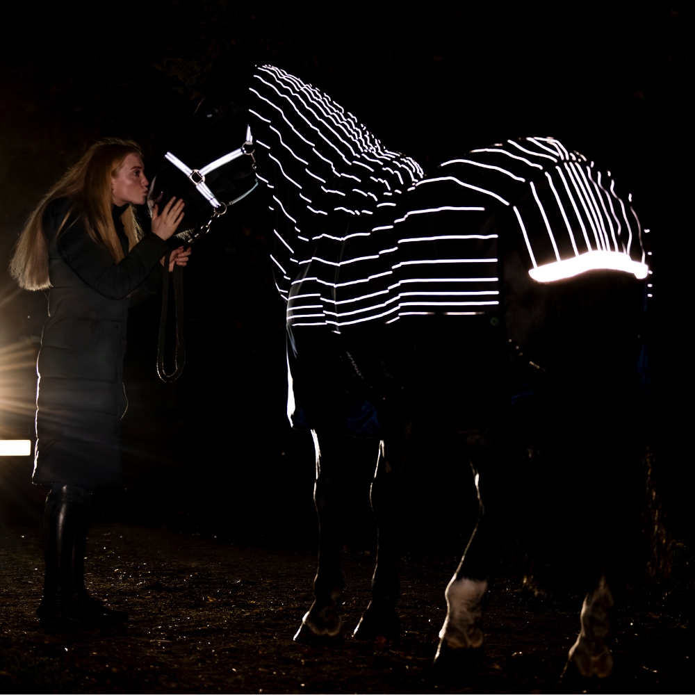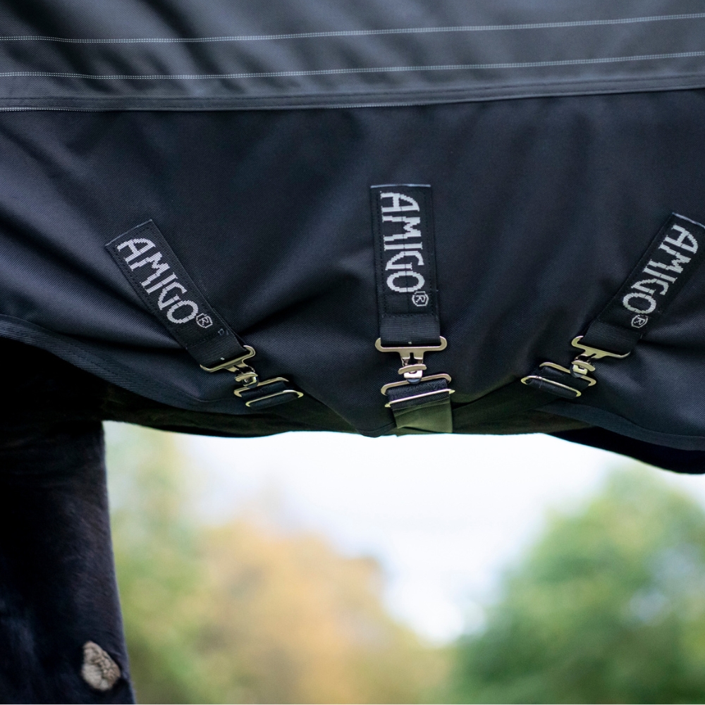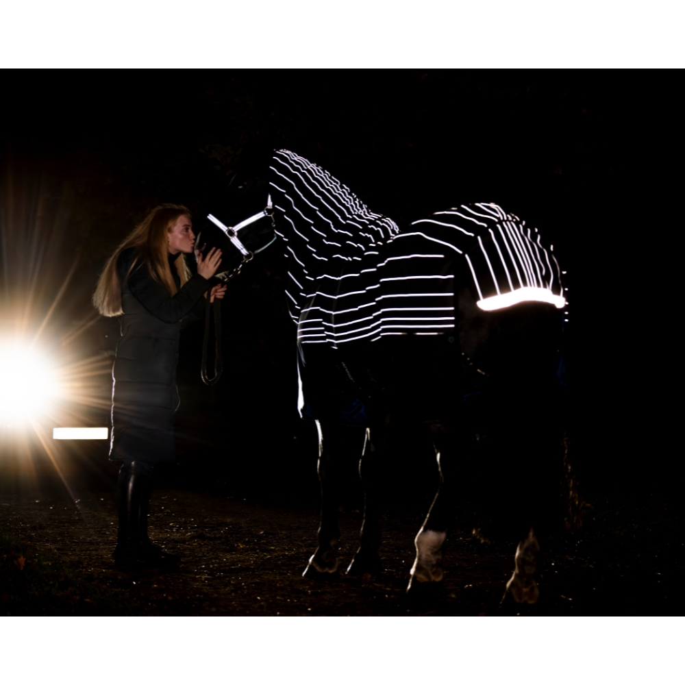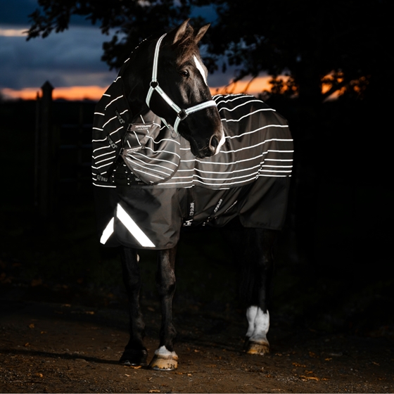 Amigo Bravo 12 Reflectech Plus 250 g är ett vintertäcke som kombinerar klassisk Bravo-kvalitet med extra säkerhet. Reflexmaterialet är vävt direkt in i tyget, vilket ger markant bättre synlighet på mörka och dimmiga vinterdagar. Perfekt för hästar som går mycket på bete – även när vädret och dagsljuset inte är på deras sida.