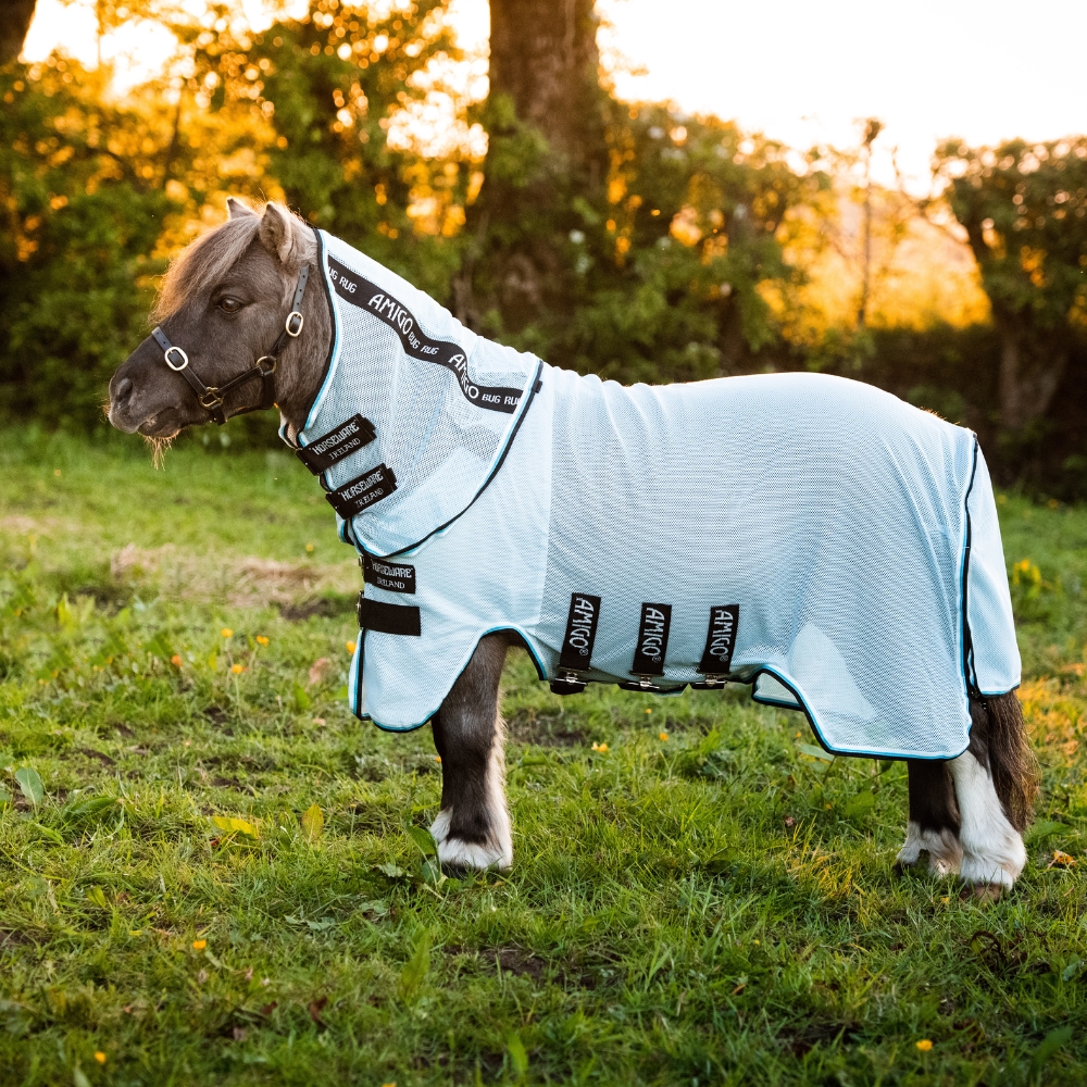 Amigo Petite Bug Rug är ett insekttäcke som är speciellt gjort för de små ponnyerna. Härligt, andningsbart insekttäcke med avtagbar hals, tillverkat i stickat, mjukt och lätt polyester.
