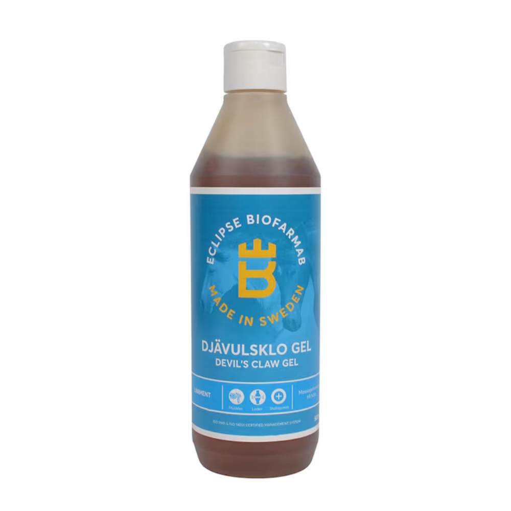 Biofarm Djävulsklo-gel är en gel som är lämplig för massage av stora muskelgrupper, där det är lätt och smidigt att massera in. Gelen ger värme till muskler och leder och kan användas förebyggande för att minska stelhet och stimulera rörligheten hos äldre hästar. Får inte användas på dräktiga ston. 96 timmars tävlingskarens. Innehåll: 500 ml