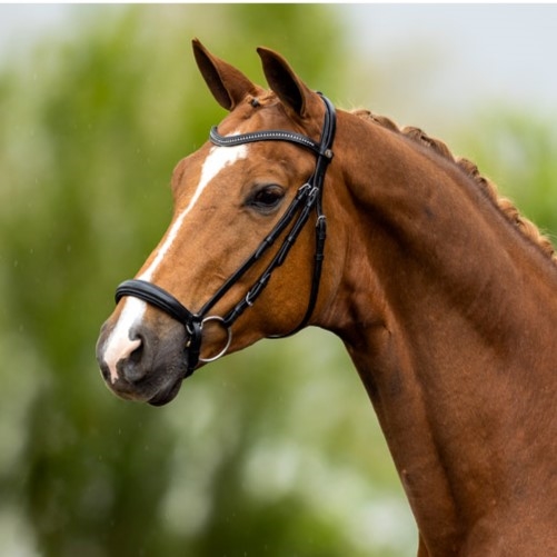 Träns med mjukt vadderat nackstycke och hannoveransk nosgrimma.