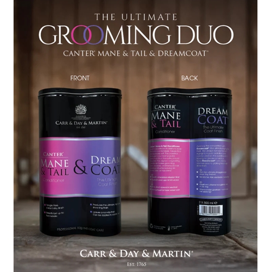 Med CANTER® Mane & Tail och DREAMCOAT® lämnas hästen silkeslen, glansig och välvårdad från huvud till svans. Produkterna ger en professionell finish och en frisk, behaglig doft som fulländar det perfekta uttrycket.
