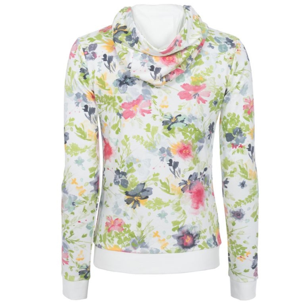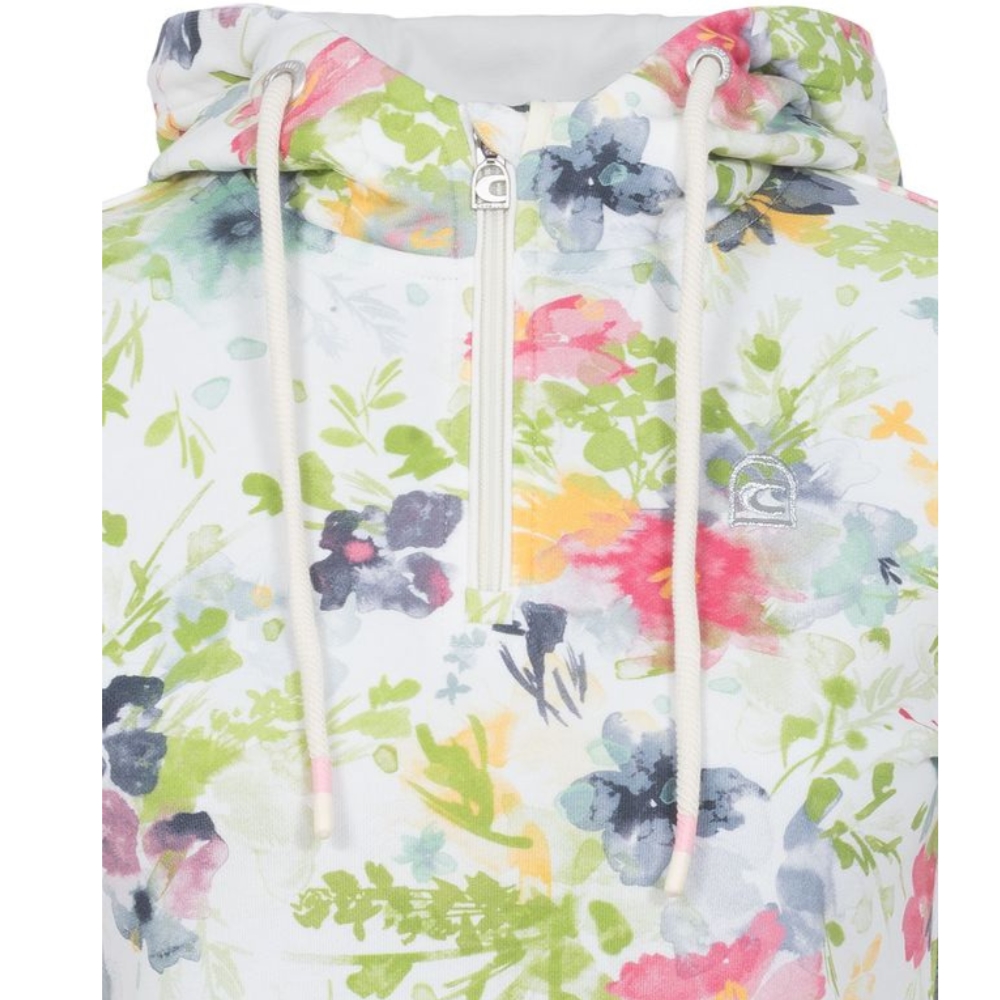 Cavallo Cavallo CAVALBLOOM Hoodie ger din ridgarderob en fräsch, feminin touch med ett modernt blomsterprint. Den mjuka bomullsblandningen (70% bomull, 30% polyester) säkerställer komfort hela dagen, både i stallet och till vardags.