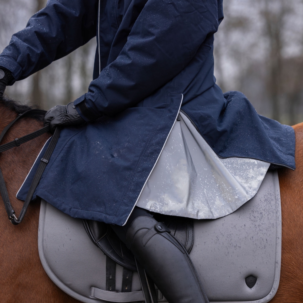 • Elastiska inre benremmar – håller kappan på plats, även i blåsigt väder eller under ridning