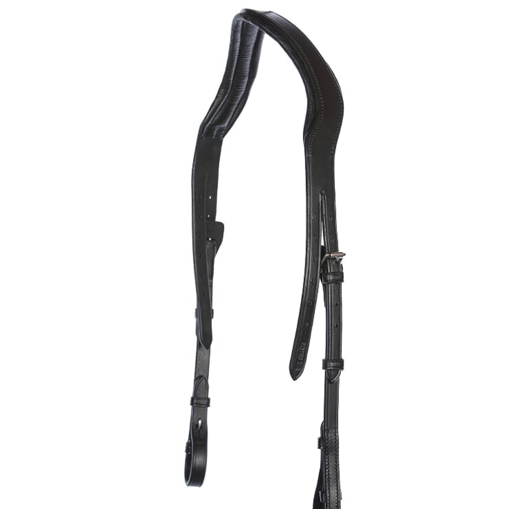 Detta anatomiska nackstycke från Eques är handgjort i läder av högsta kvalitet och är utvecklat med fokus på komfort och korrekt tryckfördelning. Nackstycket är format så att det fördelar trycket jämnt över hästens nacke, och det har en speciell utskärning vid öronen, som säkerställer att de känsliga nervbanorna runt öronområdet inte störs.
