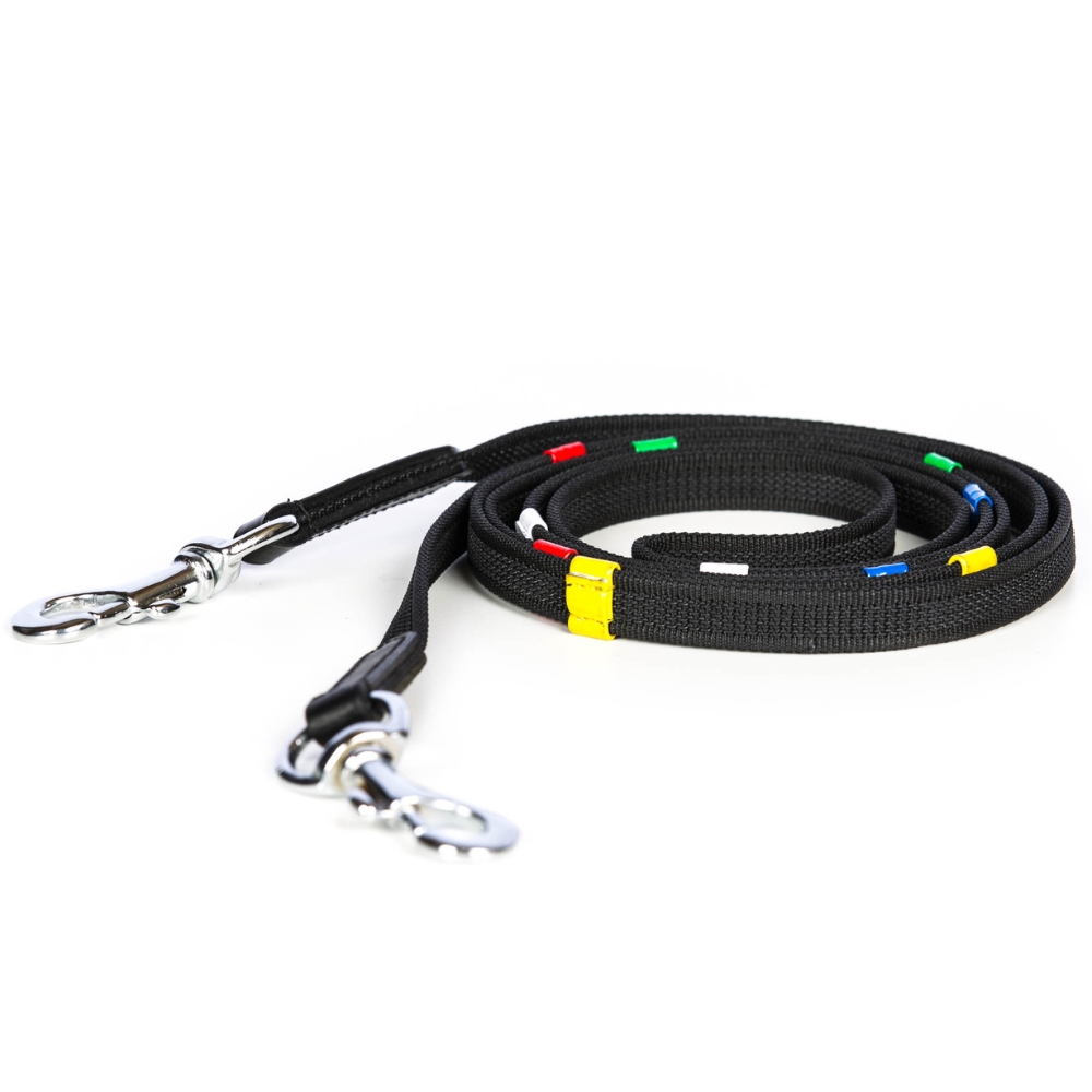 • Perfekt för ridskolebruk: Denna tygel är idealisk för ridskolebruk eller hästar som rids av flera ryttare, eftersom de färgade stopparna ger ett visuellt mål för en jämn längd och position på tygeln.