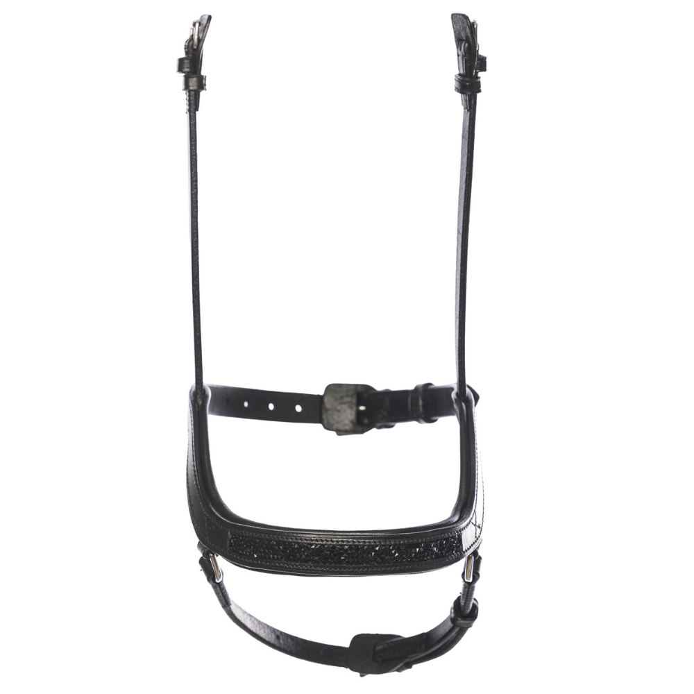 Denna eleganta ergonomiska nosgrimma från StepByStep är utsmyckad med exklusiva Moon Rock detaljer, som ger ett stilrent och lyxigt uttryck. Nosgrimman är tillverkad i mjukt kvalitetsläder och har en bekväm, vadderad insida som säkerställer maximal komfort för hästen.