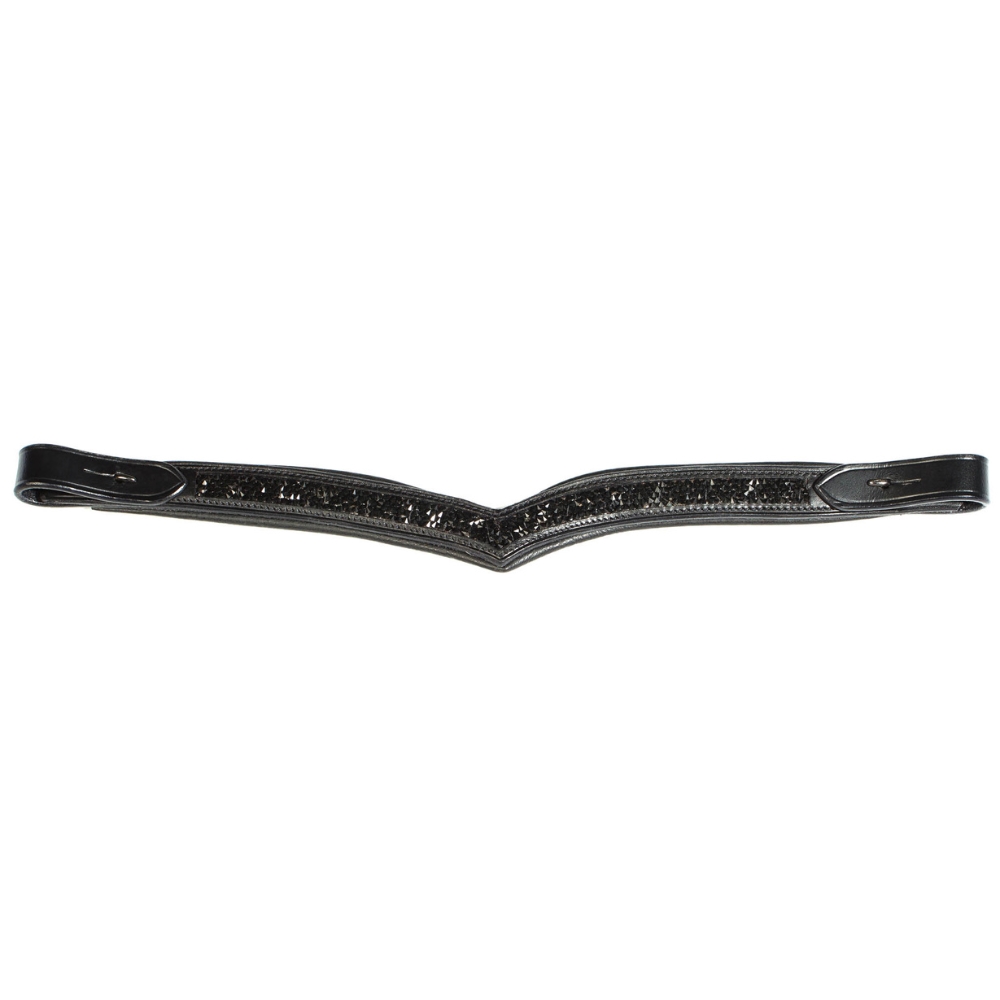 Detta eleganta V-formade pannband är utsmyckat med vackra svarta moon rock stenar, som ger ett stilfullt och exklusivt uttryck. Pannbandet är tillverkat i mjukt kvalitetsläder och har ett diskret spänne på varje sida, vilket gör det både hållbart och lätt att arbeta med.