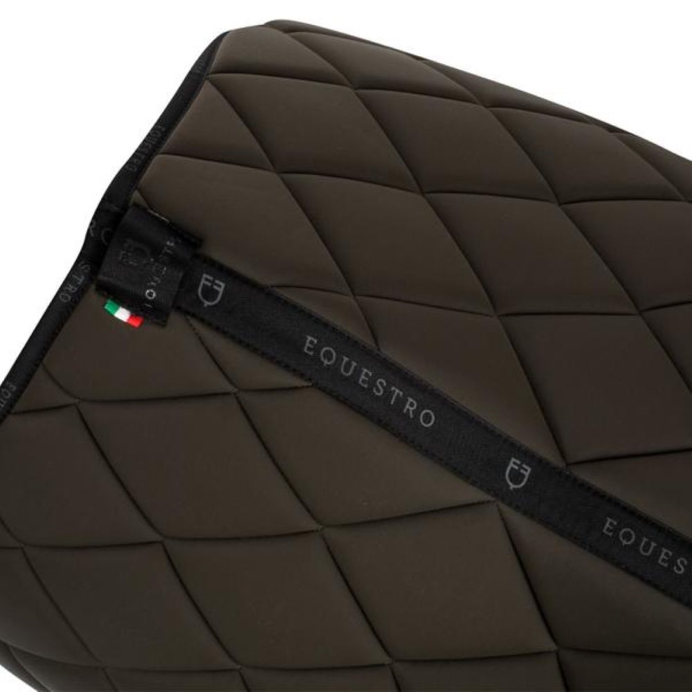 Dette elegante Equestro-set med hoppschabrak och matchande huva är tillverkat i ett vadderat tekniskt tyg, som effektivt minimerar sadelns rörelse och absorberar stötar. Det bidrar till ökad komfort för hästen och minskar risken för skavsår under ridning.