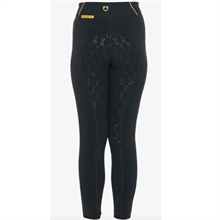 Leggingsen har praktiska sidofickor, perfekta för t.ex. smartphone, och är dekorerade med eleganta broderade Equestro-detaljer. Samma logotyper finns som silikongrip på insidan, vilket säkerställer ett stabilt säte och optimalt grepp i sadeln.
