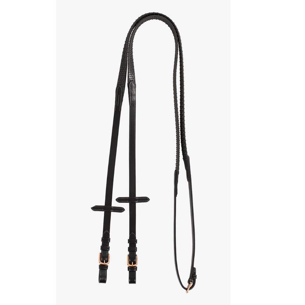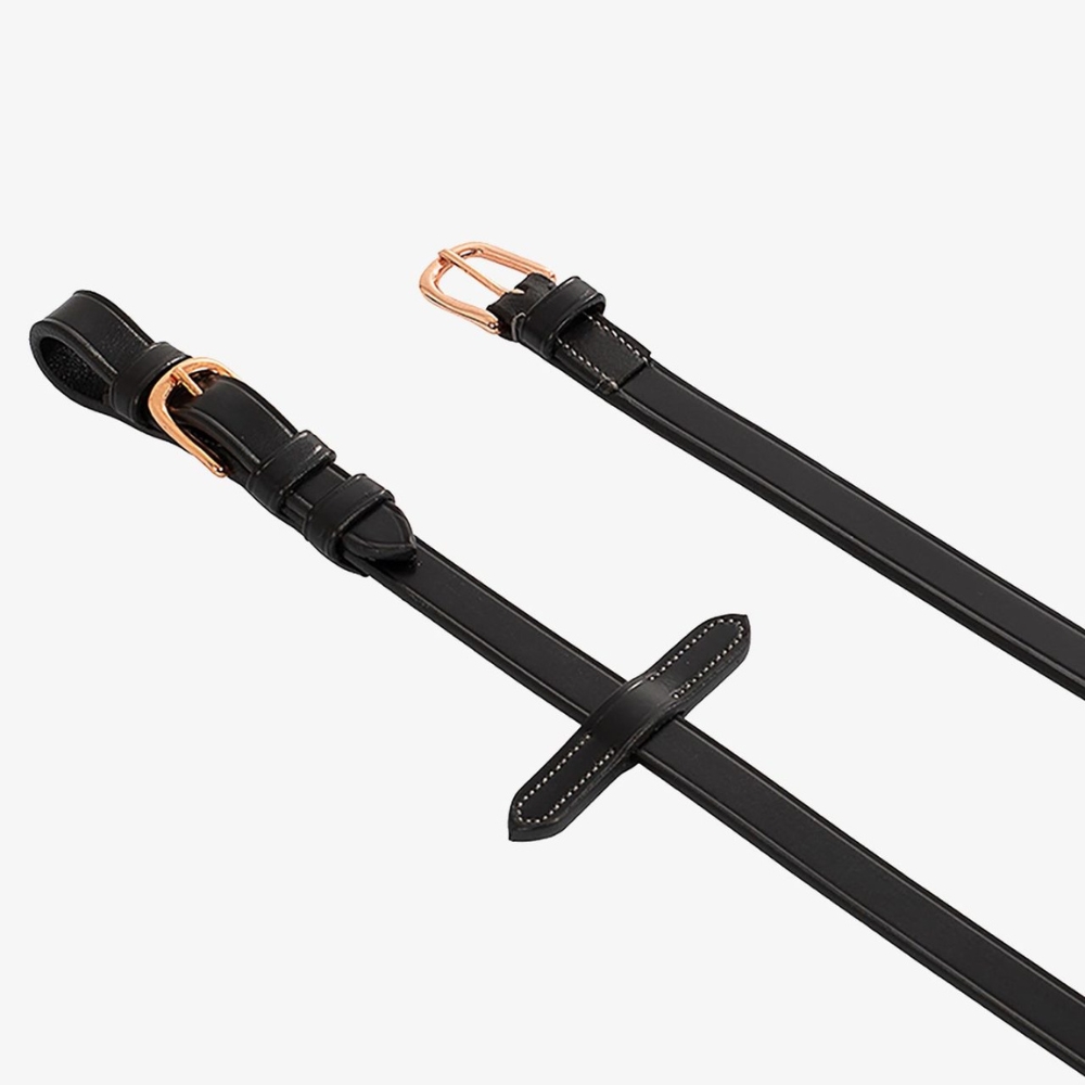 Dessa lädertyglar med gummi och rosegold spännen är den perfekta kombinationen av stil och funktionalitet, idealiska för både daglig träning och tävlingar. Tyglarna är tillverkade av mjukt italienskt läder och gummi, vilket ger en bekväm och halkfri upplevelse för ryttaren. De rosegold spännen i rostfritt stål tillför ett lyxigt uttryck, samtidigt som de säkerställer styrka och hållbarhet.