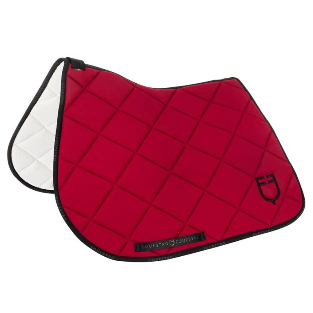 Detta eleganta Equestro-set med hoppschabrak och matchande huva är tillverkat i ett vadderat tekniskt tyg som effektivt minimerar sadelns rörelse och absorberar stötar. Det bidrar till ökad komfort för hästen och minskar risken för skavsår under ridning.