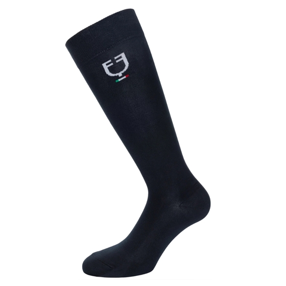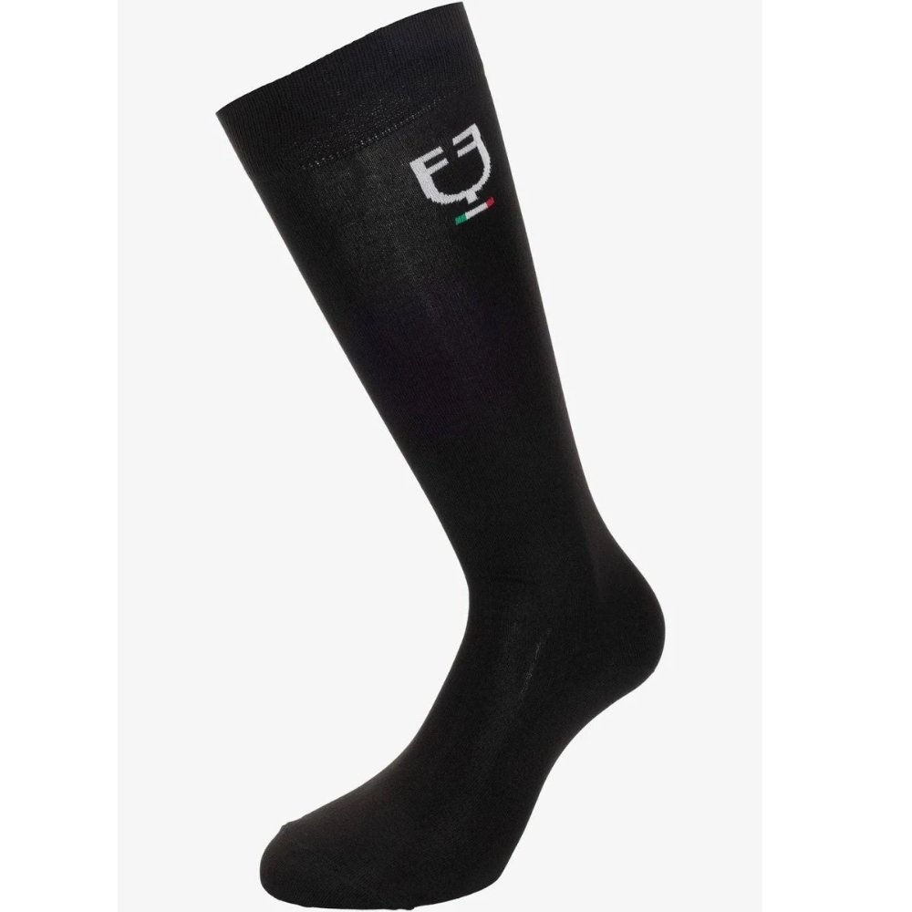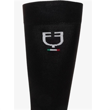 Tekniska ridstrumpor från Equestro, designade i ett andningsbart, lätt och bekvämt stretchmaterial som säkerställer optimal komfort i ridstövlarna. Strumporna är dekorerade med en stilren italiensk flagglogotyp som understryker den eleganta, sportiga designen.