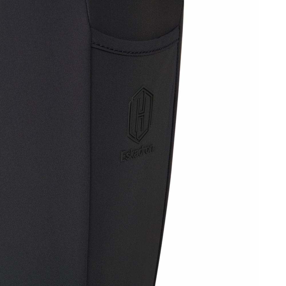 För ett stilrent och modernt utseende är tightsen designade med fake dragkedjesömmar, en formande bred linning med bälteshällor, samt en vacker svängd söm bak med Eskadron-tryck. De praktiska mobilfickorna på båda sidor gör det enkelt att ha med telefonen i stallet.