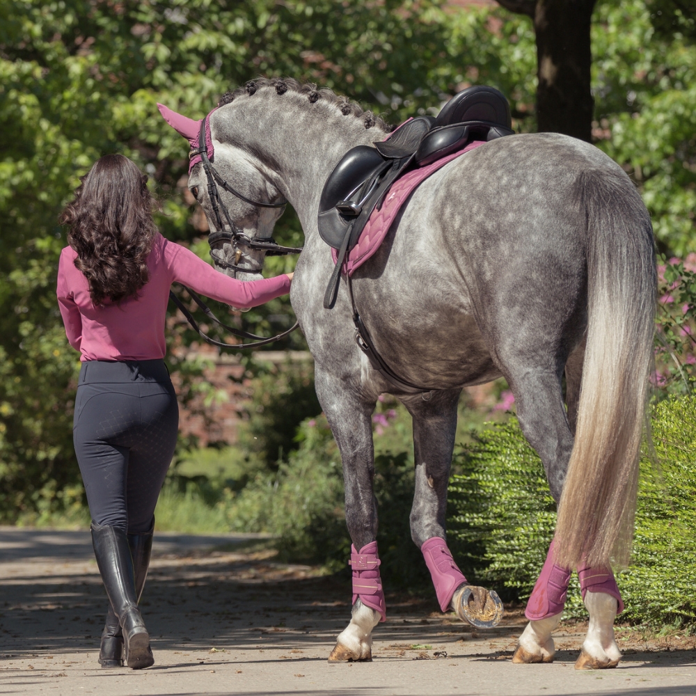 Kanten är utförd i mjuk softshell, som ger en behaglig och skonsam avslutning mot hästens ben, medan den inbyggda PU-slagbeskyddszonen med elegant logoprägling ger extra hållbarhet och säkerhet.