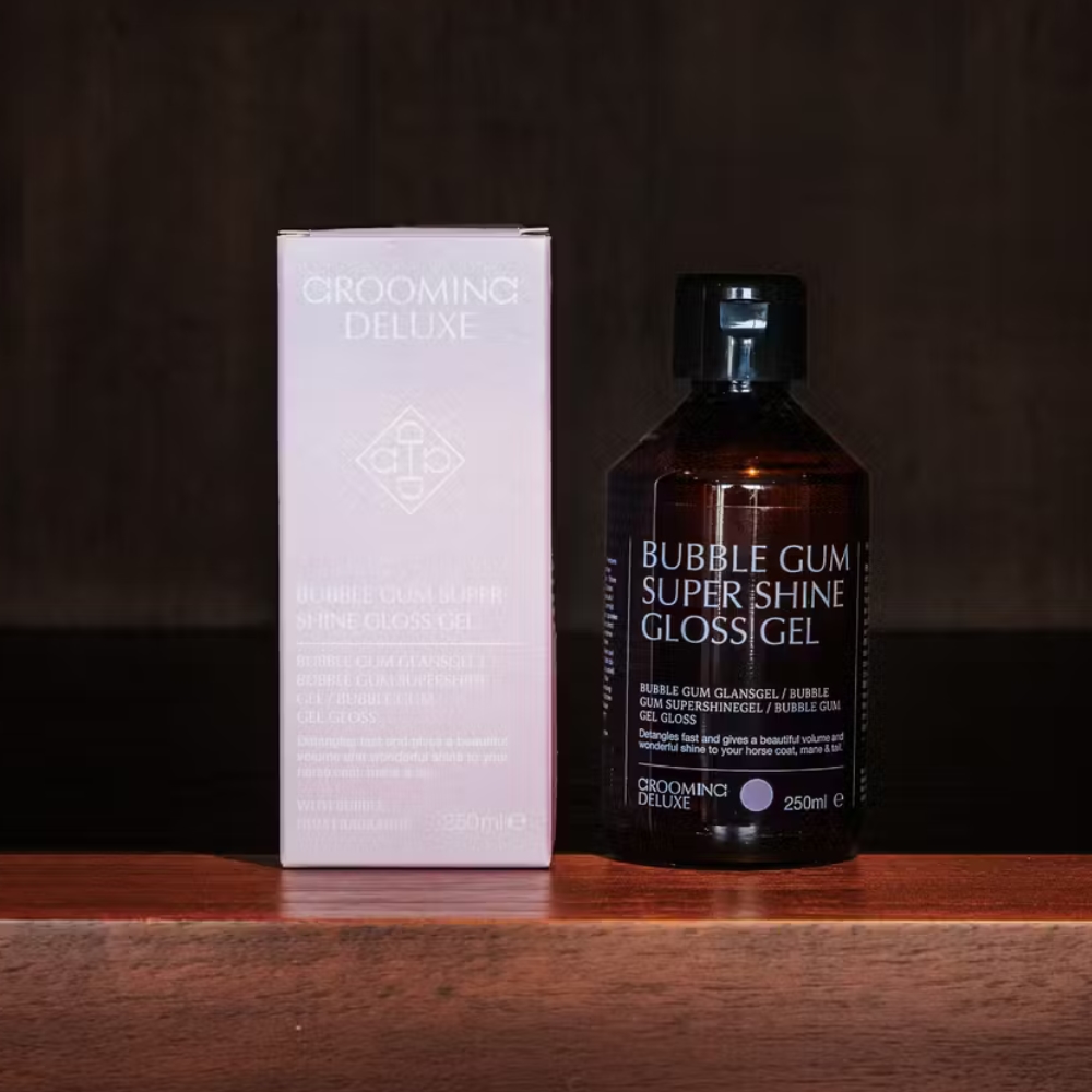 Super Shine Gloss Gel Bubble Gum är utvecklad för att ge man och svans ett perfekt och välvårdat utseende – idealiskt för tävlingar, shower eller daglig vård. Gelen har både utredande och vårdande egenskaper som gör håren mjuka, glansiga och lätta att arbeta med.