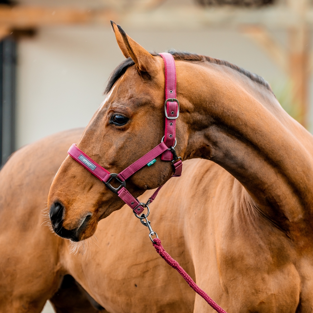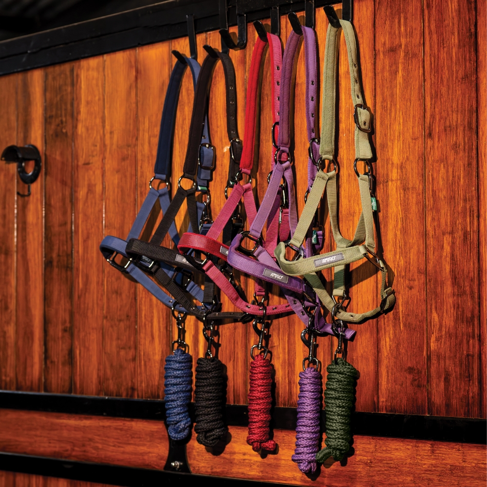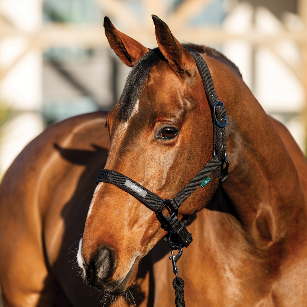Horseware Amigo grimma är en funktionell och stilren grimma som levereras med ett matchande grimskaft. Grimman är tillverkad i slitstarkt material och designad för daglig användning i stallet och i hagen.