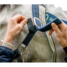 Field Safe-grimman är konstruerad för att öppna sig om hästen skulle fastna i något. Detta sker via en återanvändbar kardborrestängning, som ökar säkerheten utan att kompromissa med funktionaliteten. Dessutom är grimman utrustad med reflexdetaljer, som förbättrar synligheten i mörker och dåliga ljusförhållanden.