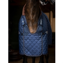 Den smarta bib-frontknäppningen reducerar tryckpunkter vid bringa och skuldror och ger hästen frihet att naturligt sänka halsen – till exempel när den äter. Två kryssgjordar säkerställer att täcket ligger stabilt, medan den praktiska svansremmen är lätt att rengöra.
