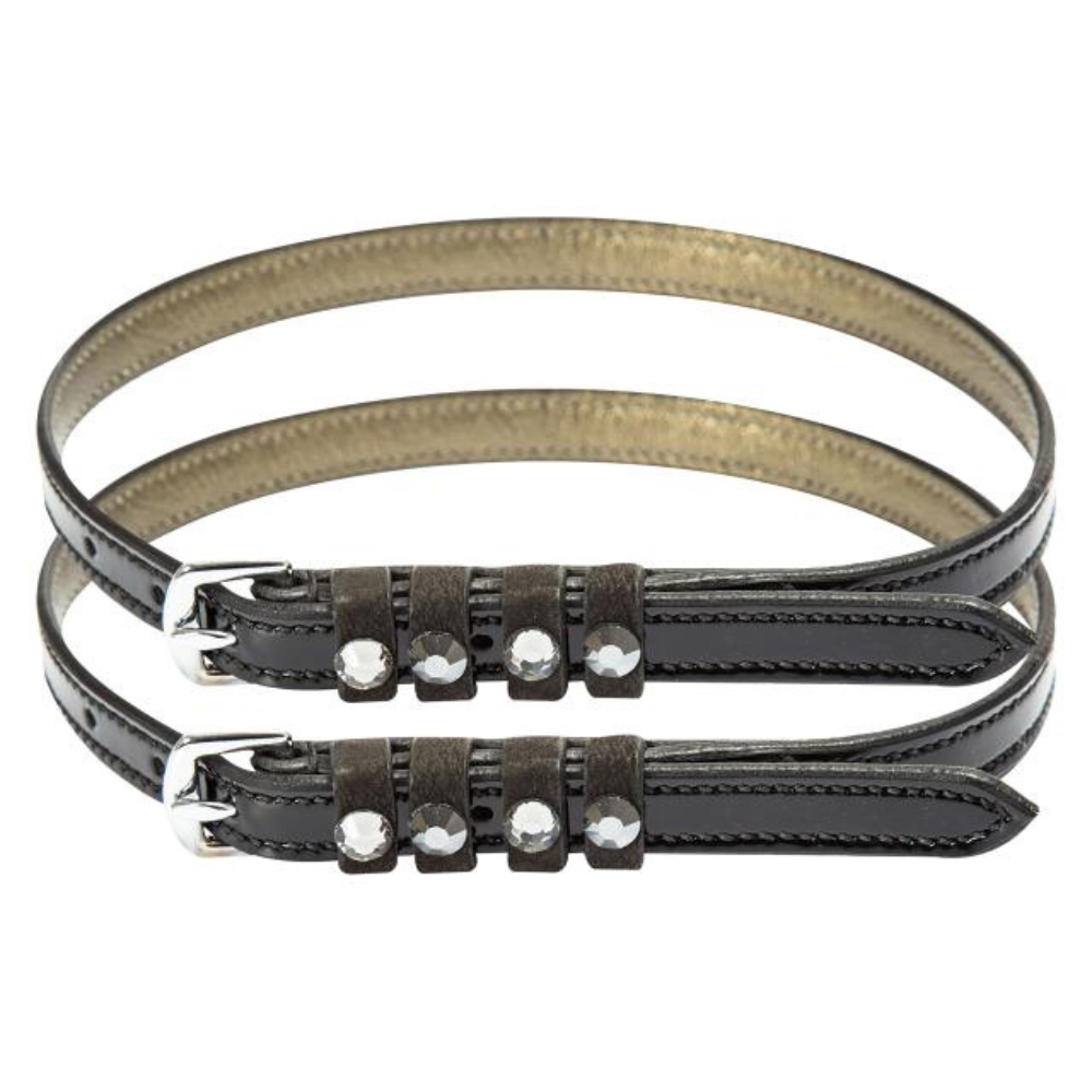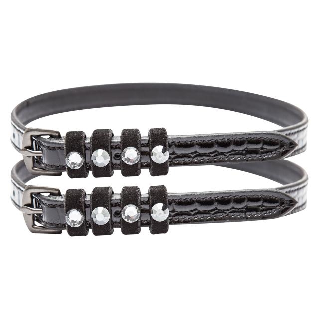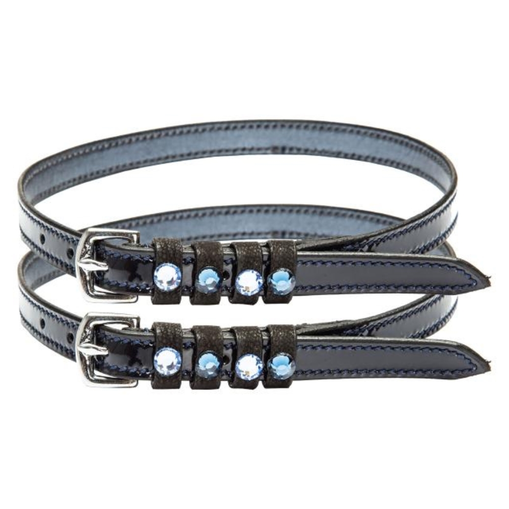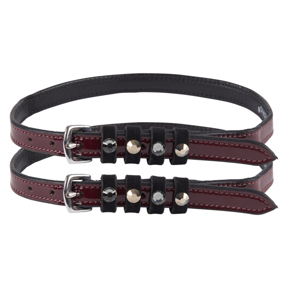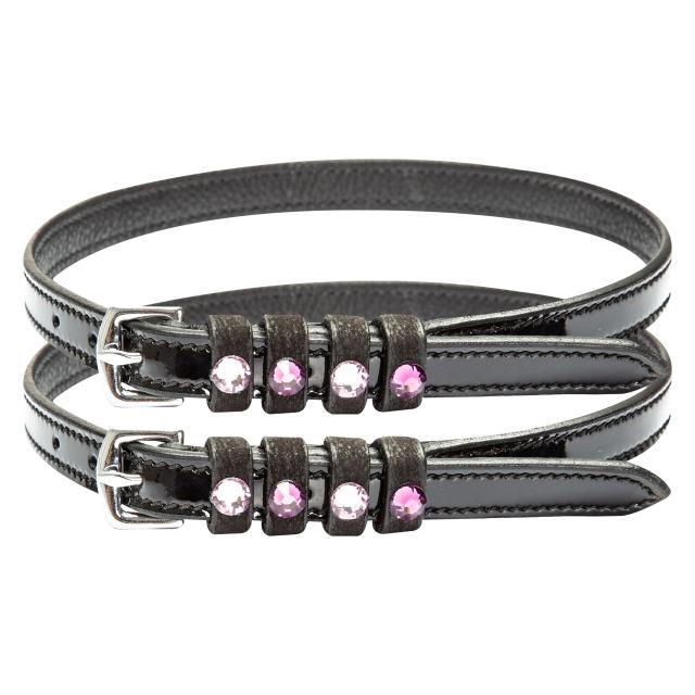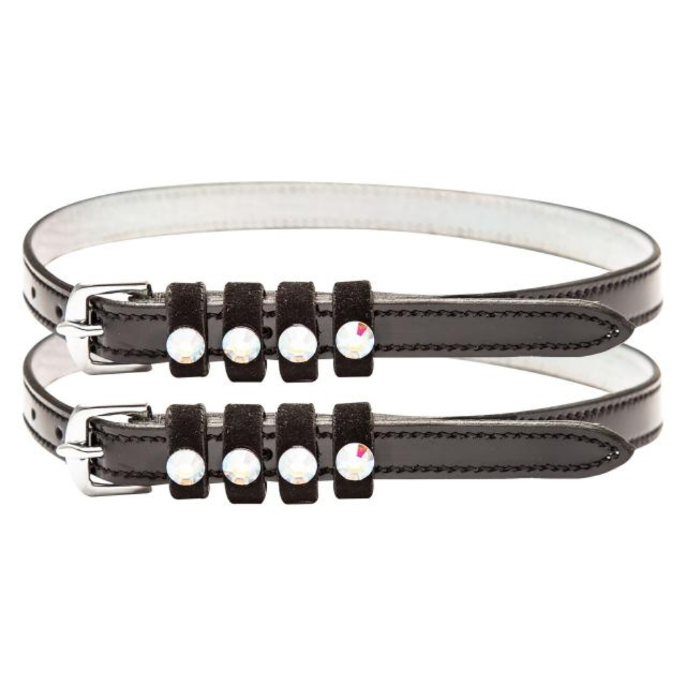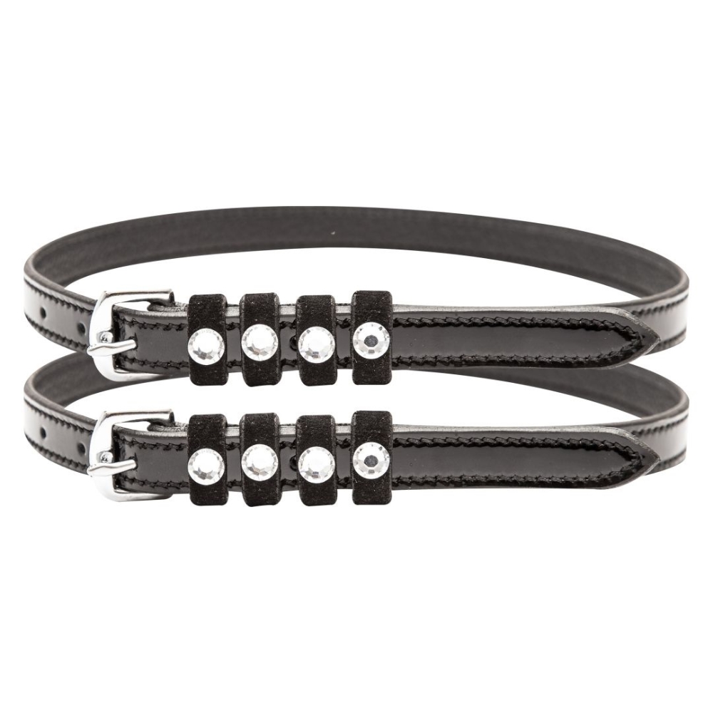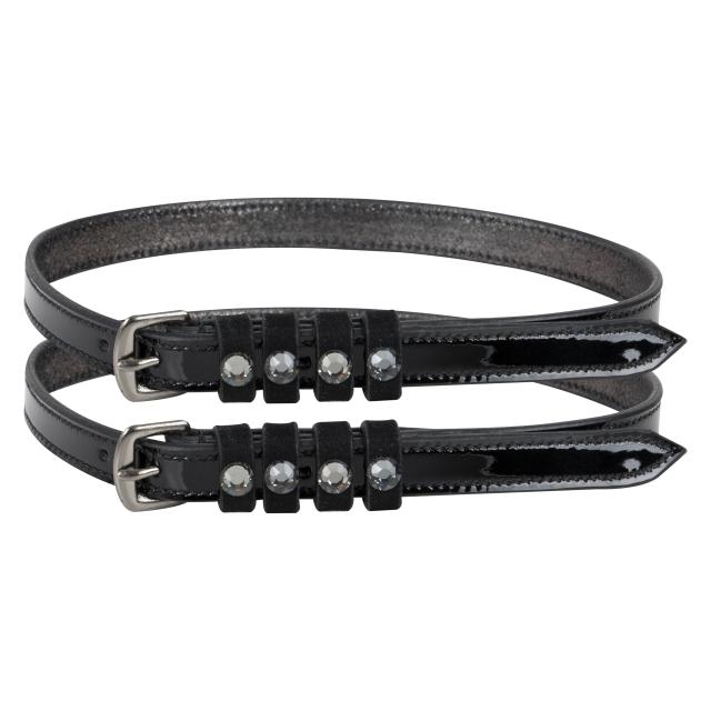 Tillverkade i fint läder med lackdetaljer och dekorerade med strass-stenar, ger de en exklusiv och stilren look – perfekt för ryttare som vill ha det lilla extra.