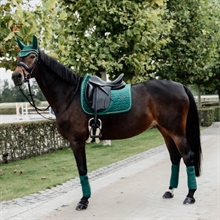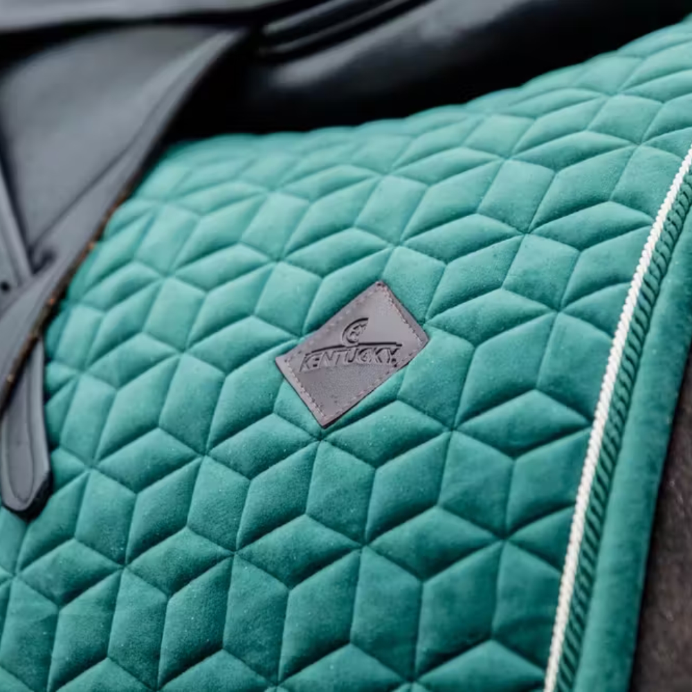 Exklusivt dressyrschabrak från Kentucky. Schabraket är gjort av ett härligt material och har ett klassiskt utseende. Schabraket har inga stroppar för att fästa på sadeln, utan har endast nylonstroppar för att hålla gjorden på plats. Schabraket har en fin logga, gjord av konstläder, som är placerad högre än normalt för att lämna utrymme för eventuell brodyr. Schabraket kan maskintvättas i 30° men bör inte torktumlas. Finns i storlek: Full Finns i färg: Emerald - Grey - Black - Beige - Bordeaux - Purple - Light Blue - Old Rose