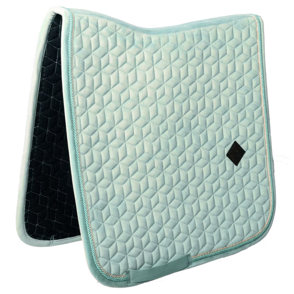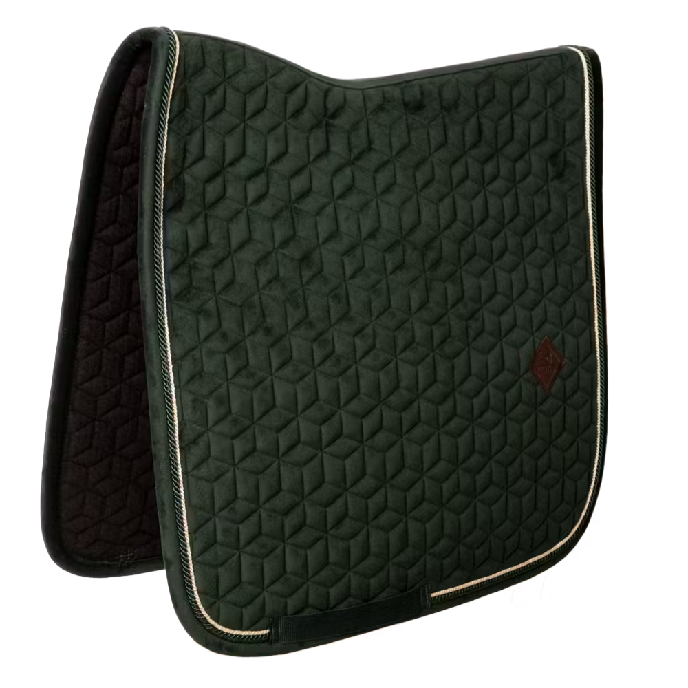 Exklusivt dressyrschabrak från Kentucky. Schabraket är gjort av ett härligt material och har ett klassiskt utseende. Schabraket har inga stroppar för att fästa på sadeln, utan har endast nylonstroppar för att hålla gjorden på plats. Schabraket har en fin logga, gjord av konstläder, som är placerad högre än normalt för att lämna utrymme för eventuell brodyr. Schabraket kan maskintvättas i 30° men bör inte torktumlas. Finns i storlek: Full Finns i färg: Emerald - Grey - Black - Beige - Bordeaux - Purple - Light Blue - Old Rose