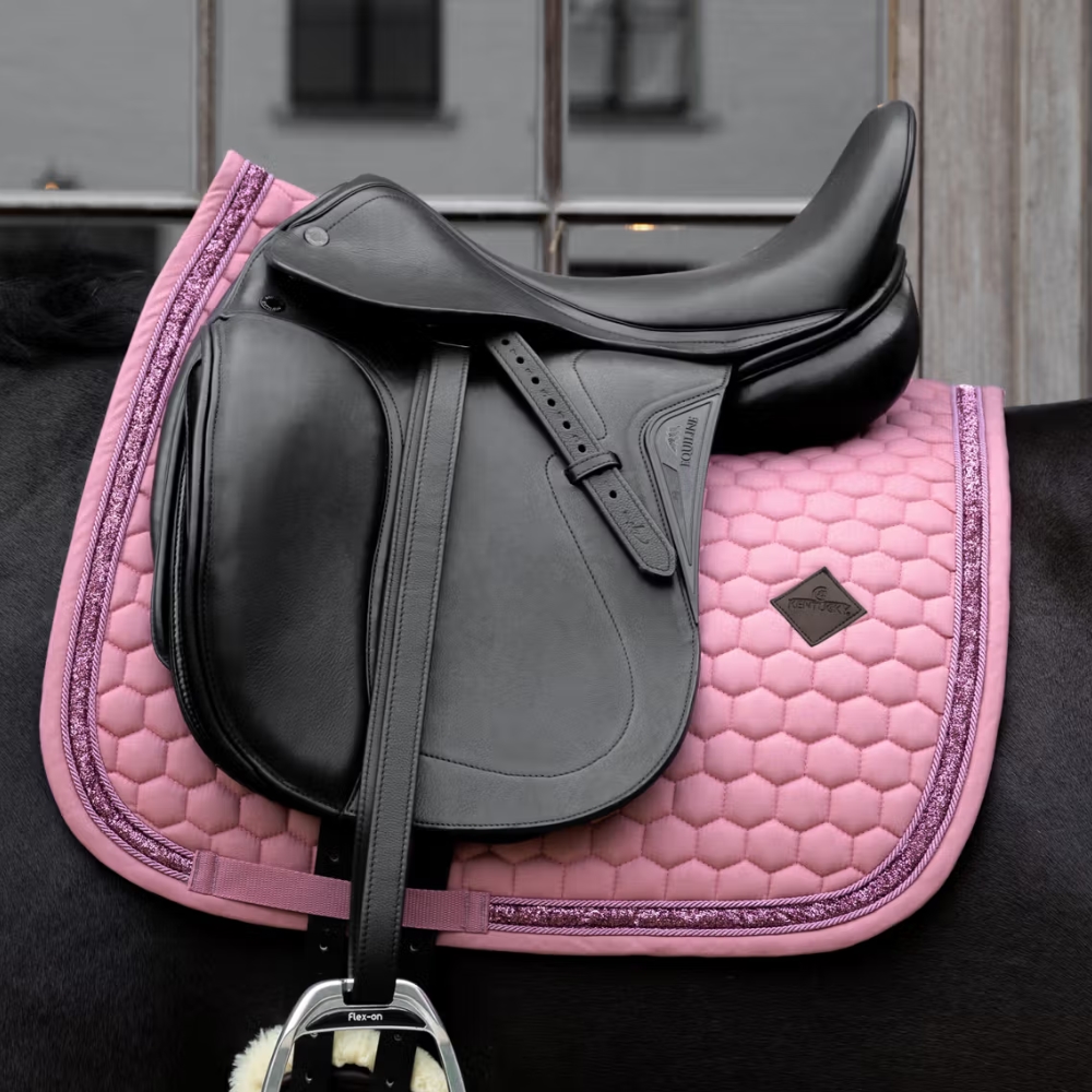 Skil dig ud og løft dit udtryk med Kentucky Glitter Band Dressyr schabrak – et eksklusivt sadelunderlag, der kombinerer raffineret design, høj komfort og funktionalitet. Det iøjnefaldende glitterbånd giver et elegant look, som fanger blikket, uanset om du rider til træning eller konkurrence.