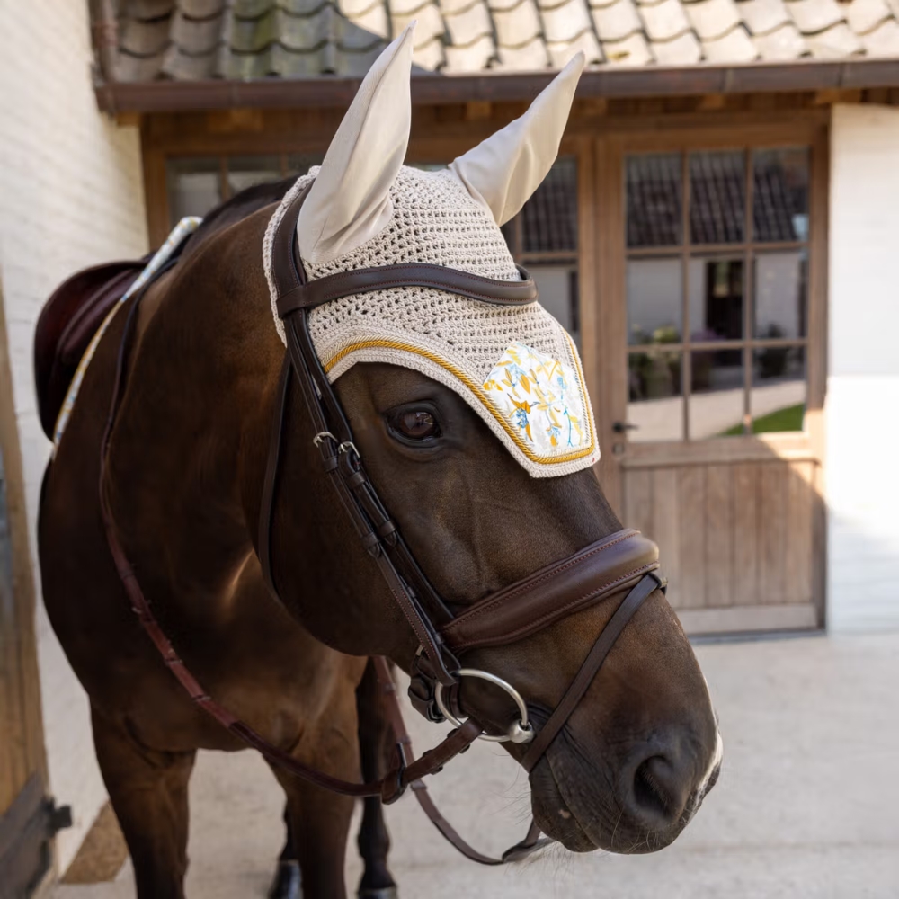 Kentucky The Fly Veil Wellington Velvet Printing kombinerar det klassiska amerikanska utseendet med lyxiga velvet-detaljer och unika tryck, vilket gör denna huva till den perfekta mixen av funktion, stil och originalitet. Hutten är designad för att matcha perfekt med Kentucky Velvet Saddle Pad (ref. 42807) och ger ett genomfört och exklusivt uttryck för både träning och tävling.