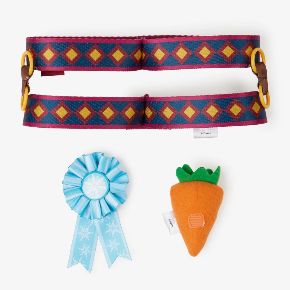 Setet innehåller en solid rensele, en Elsa-inspirerad rosett samt en morotsgodis – allt nödvändigt tillbehör för att göra Sven redo som din trogna följeslagare på nya äventyr.