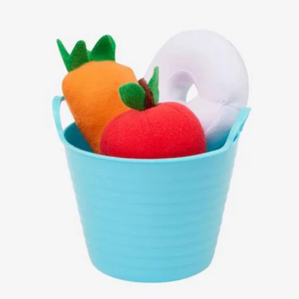Denna söta Hobby Horse godiskorg innehåller en rad mjuka tygbitar som liknar riktiga hästgodisar – bland annat en mjuk tygmorot, ett krispigt äpple, och en läcker sockerbit. Alla godisarna är gjorda i mjukt tyg med fina detaljer, så de både är mysiga att leka med och säkra för barn.