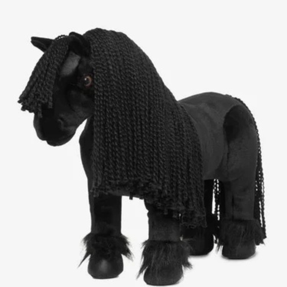 Möt Spike, den fantastiska svarta Frieser-leksaksponnyn, perfekt för små ryttare som vill lära sig om hästar genom lek. Spike är en hög, stolt valack med lång, flätbar man och svans samt eleganta svarta hovskägg, som ger realism och charm till varje stalllek.