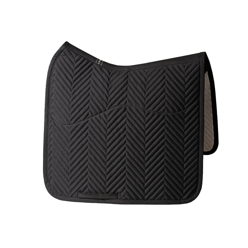 L'Evoine alpaca fleece-sadelunderlaget kombinerar den högsta nivån av komfort och tryckfördelning för hästen och ger samtidigt möjlighet till känslig användning av ryttarens viktbärande hjälpmedel. Detta schabrak kombinerar de bästa egenskaperna hos helt naturliga bomullsschabrak med de unika fördelarna med alpaca fleece som vaddering för sadeln: