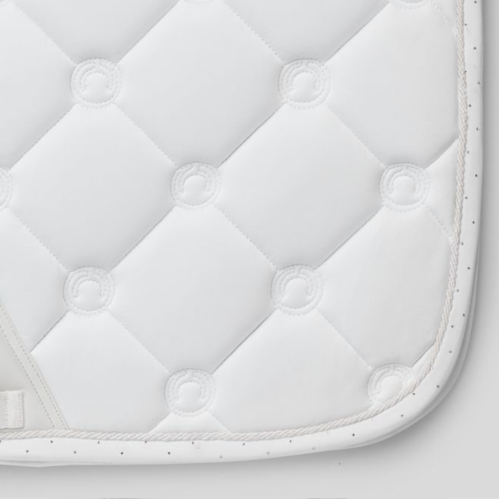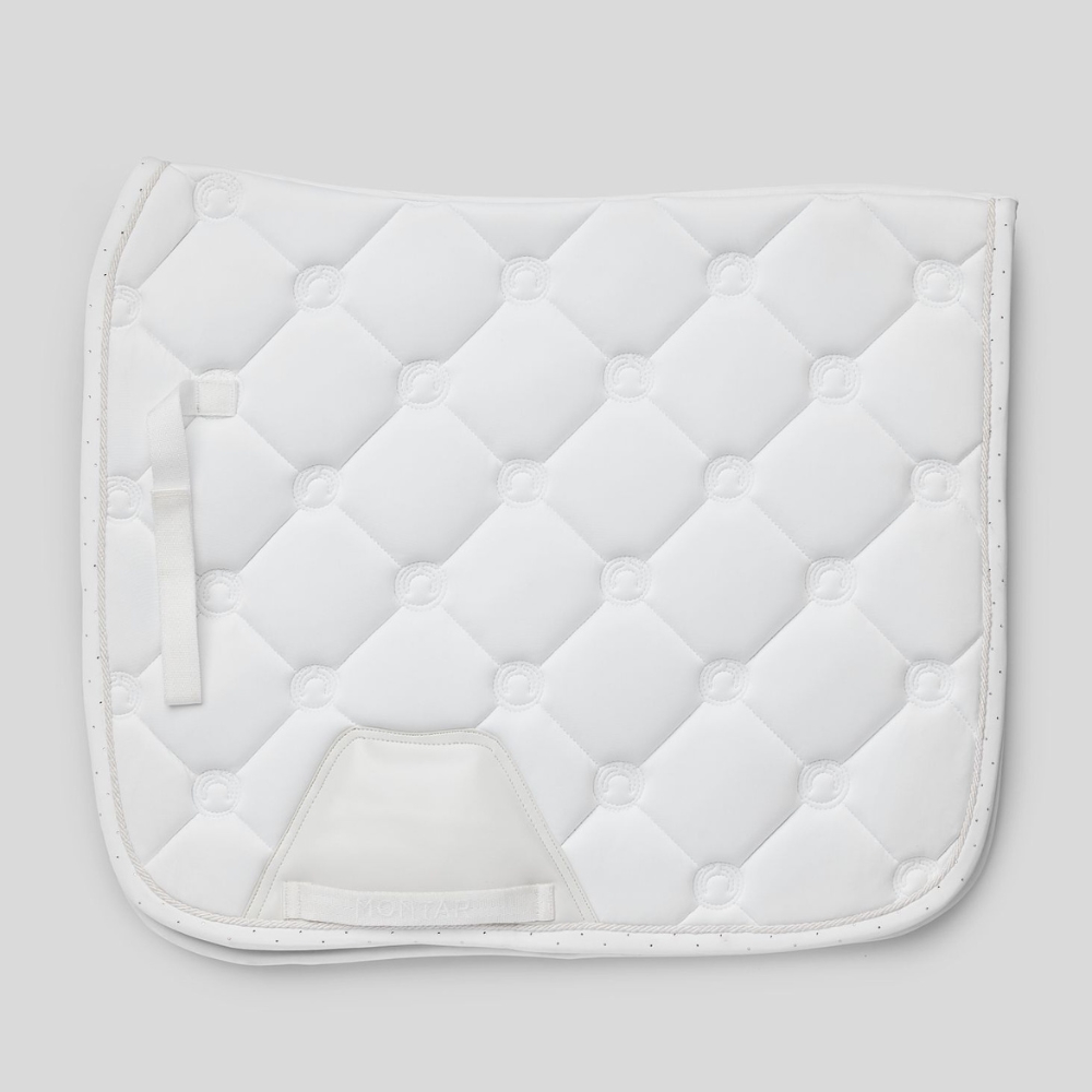 Montar Flow dressyrschabrak med champagnekristaller kombinerar komfort, funktionalitet och en exklusiv design som ger både ryttare och häst ett stilfullt uttryck under ridning.