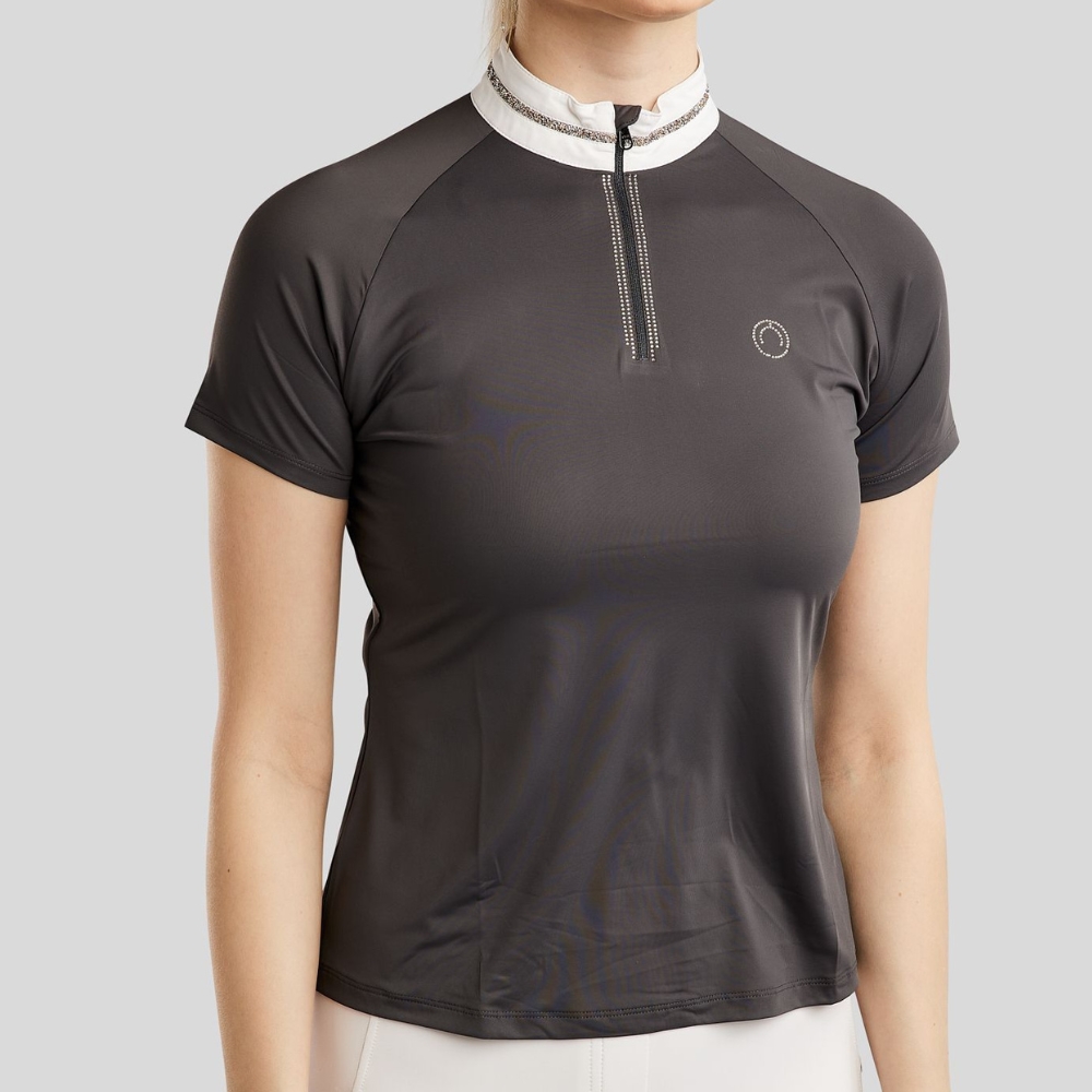 Den lätta och andningsbara kvaliteten säkerställer maximal komfort – även under press på tävlingsbanan. Dragkedjan framtill gör blusen lätt att ta av och på, och den tättsittande, feminina passformen framhäver silhuetten utan att begränsa rörelsefriheten. MoLila tävlingsblusen är det perfekta valet för ryttaren som vill kombinera stil, komfort och prestanda i en design.