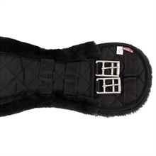 Härlig och bekväm dressyrgjord tillverkad i kviltad bomull med foder av syntetiskt lammskinn (100% polyester) – ett material som känns nästan som äkta lammskinn.