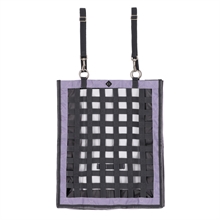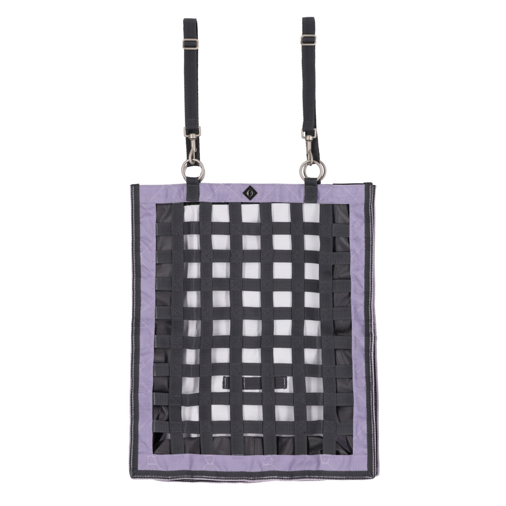 Robust slowfeeder med nätfront tillverkad av breda tygremsor, som hjälper till att minska foderintagshastigheten och minimera spill. Perfekt för användning i box, trailer eller på tävling.