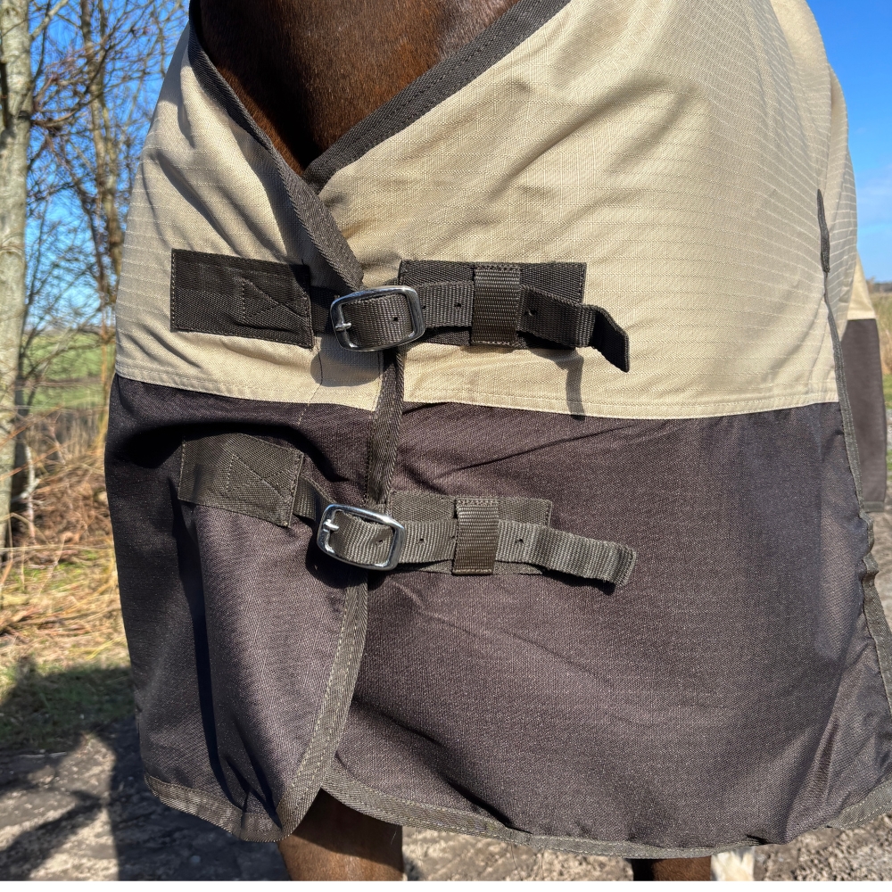 RK övergångstäcke 100 gram Beige/Brown är ett pålitligt och praktiskt val för våta dagar, när din häst behöver ett lätt, bekvämt och effektivt skydd mot vädret.