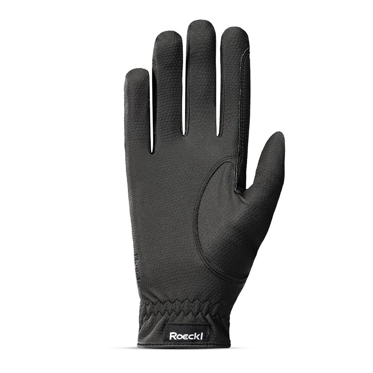 Handsken är tillverkad i det exklusiva ROECK-GRIP®-materialet, som är känt för sin mjukhet, elasticitet och utmärkta grepp. Det ger en tajt passform och optimal kontakt med tyglarna, så att du får maximal kontroll under ridning.