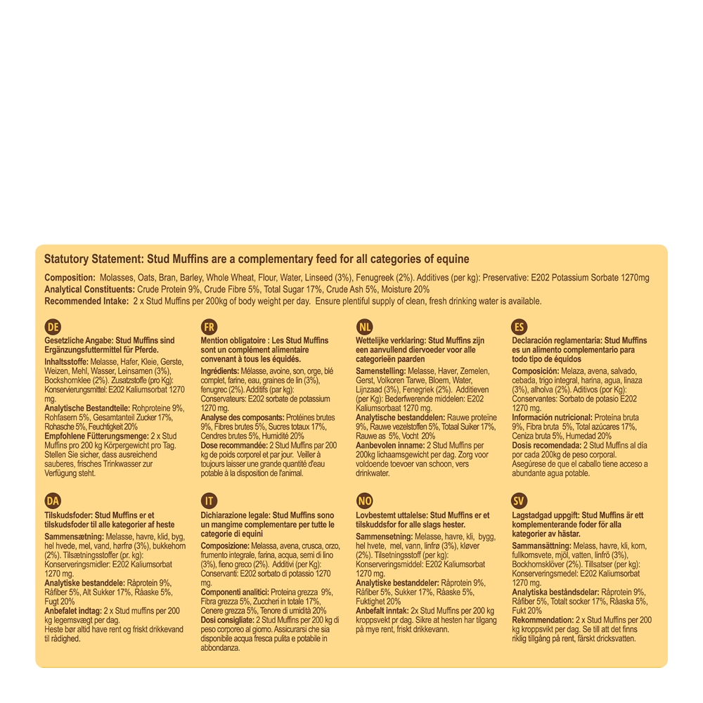 Varje godis innehåller spannmål, såsom majs, vete, havre, korn och majs. och är berikade med linfrö och bockhornsklöver.