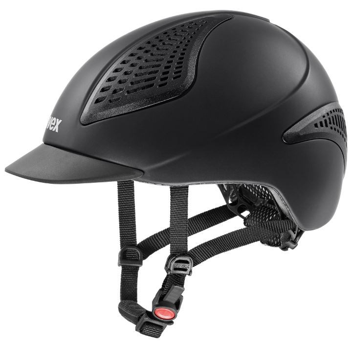 Uvex exxential II är en fantastisk lätt hjälm på 400 gram, tillverkad av specialpolykarbonat vilket gör hjälmen extremt stark. Uvex exxential II är en sportig allround-hjälm som kan användas till alla typer av ridsport. . Hjälmen är godkänd enligt europeisk standard CE VG1 01.040 2014-12 Uvex exxential kan justeras i storlek med en knapp i nacken. Ridhjälmen har super effektiv ventilation. Finns i färgerna: Svart matt - Blue matt - Ruby matt - Mocca matt Finns i storlekar: XXS - Small 52 - 55 cm Small - Medium 55 - 57 Medium/large - 57-59 cm Large/xlarge - 59-61 cm